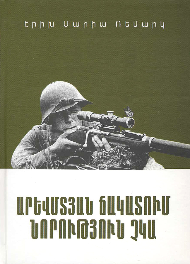 All Quiet on the Western Front is a novel by world-renowned German writer Erich Maria Remarque, which was first published in 1929. It is one of the all-time world bestsellers among books on war. By the way, it was on the list of banned literature in Nazi Germany. The heroes of the novel are German soldiers; the actions take place during the First World War. With the sharp eye of an eyewitness, the writer describes the lives, feelings, psychology, and thoughts of the soldiers at war.Նկարագրութիւն